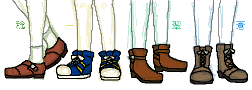 靴で見るLLLメンズ 雑記 2014.10.162023.12.08 ミノル:サイドストラップの皮靴 カズキ:スニーカー ハクト:ジョッパーブーツ ナギト:編み上げブーツ LLLのキャラは靴について無駄にこだわってたりする、という話。 靴1つ取っても個性出ますもんね。