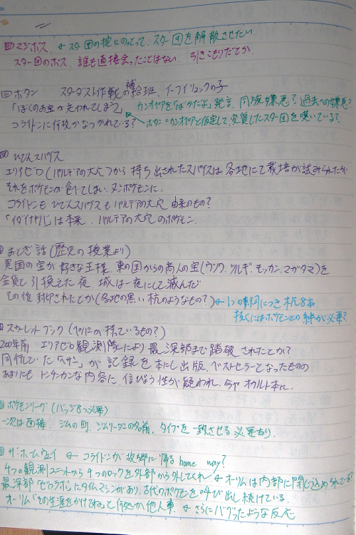 ちなみに、プレイ日記はこんな感じでノートにボールペンという超アナログな方法で書いてました。(SV本編のネタバレを含みます)