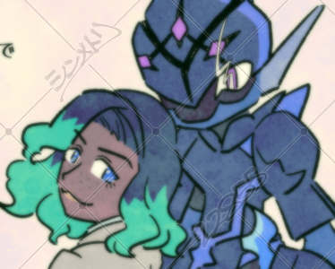 瞳の色は没案でホワイトもありました。この色合いで瞳の色をホワイトにすると瞳だけ目立つ感が中々よくて。結局ウルトラマリンブルーになりましたけど。