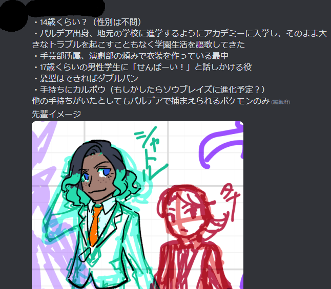 モチーフとなったのは私のサブロムバイオレットの主人公です。タナ(スカーレット)とは正反対なキャラクターを作りたくて外見作ったらこうなりました。