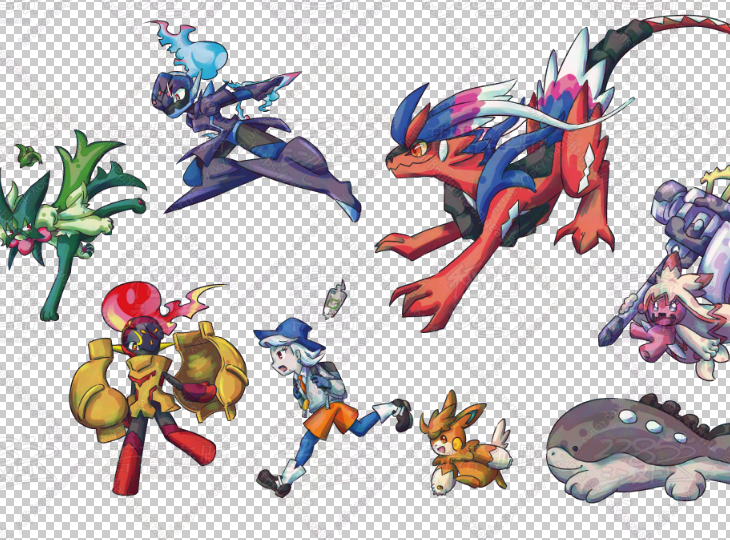 ゼンローズ(コライドン)なんて尻尾が見切れるのは確定です。ただしデザイナーさんがどう配置をするかは不明なので、デザイナーさんが困らないように全身描いておきました。