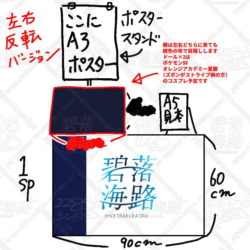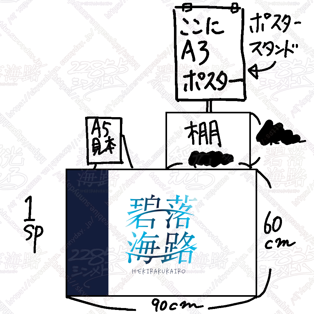 これは表紙デザイナーさんに「当日のサークルスペースはこんな感じになります」とザクッと書いた資料。